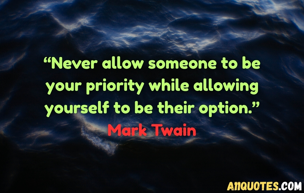 “Never allow someone to be your priority while allowing yourself to be their option.” Mark Twain