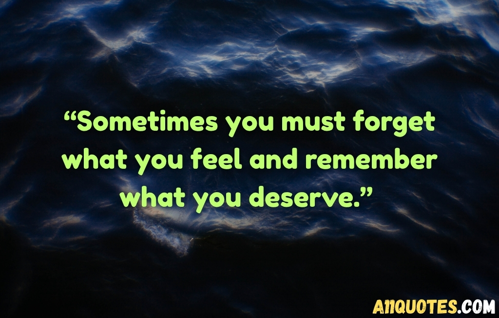 “Sometimes you must forget what you feel and remember what you deserve.”